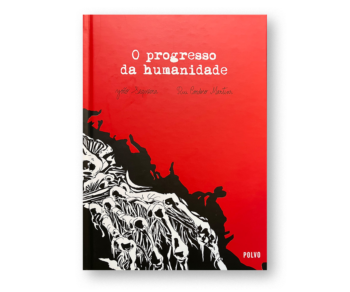 É já a terceira parceria de João Sequeira e Rui Cardoso Martins a resultar num livro de banda desenhada. Depois de Espelho de Água e Estômago Animal, O Progresso da Humanidade volta a ter como ponto de partida um conto de Cardoso Martins, mas o que se espalha pelas pranchas a preto e branco estruturadas e desenhadas por João Sequeira não é uma mera adaptação do texto original. Tal como acontecia nos livros anteriores, o que lemos é uma outra obra, uma narrativa onde texto e imagem são uma só respiração a marcar o caminho que podemos ir fazendo e a deixar abertas outras sendas, não necessariamente seguras no que toca às descobertas que por lá faremos, mas nem por isso menos recomendáveis.