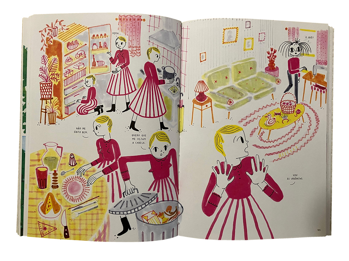 Sim, penso que são vários factores, e o da saúde mental é um deles, claro, porque agora é um tema que parece ter ganhado actualidade, de um certo modo… Falamos muito de ansiedade, de depressão, mas, por exemplo, falar de delírios psicóticos, isso já dá medo e cria vergonha. Penso que uma parte do interesse que este livro desperta nos leitores vem daí. Por outro lado, o tema apresenta-se de uma forma que não é tão habitual, porque no imaginário colectivo estes temas estão mais próximos do terror, e o facto de o livro ser assim, com cor, bordado, muito quotidiano, e também o facto de cruzar o espaço do lar, a protecção materna, tudo isso contrasta com o peso da doença mental. É um pouco como o humor, que tantas vezes é um recurso para falar de coisas muito pesadas. Aqui, aproximar-me deste tema a partir da beleza, da cor, traz outro ponto de vista.