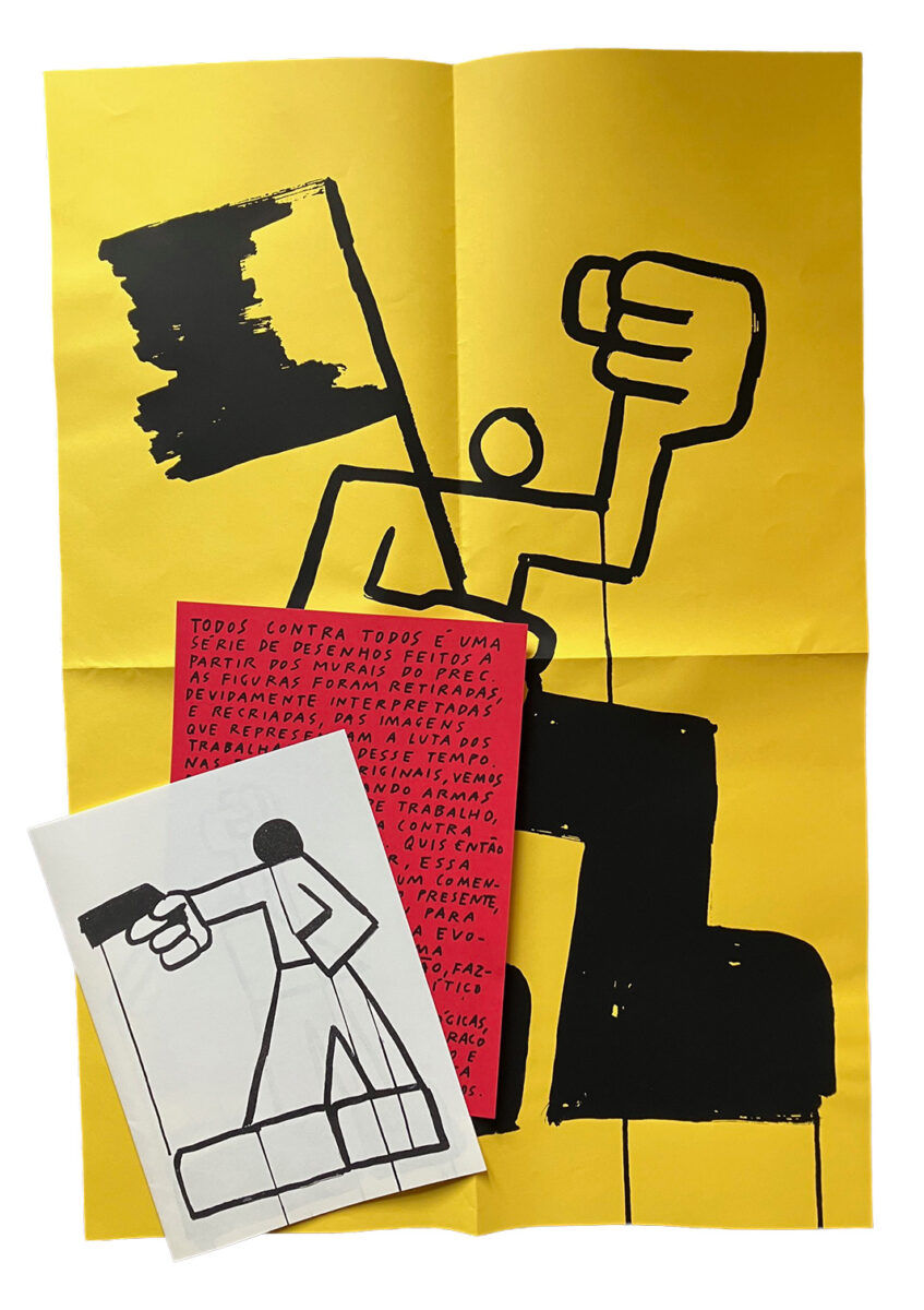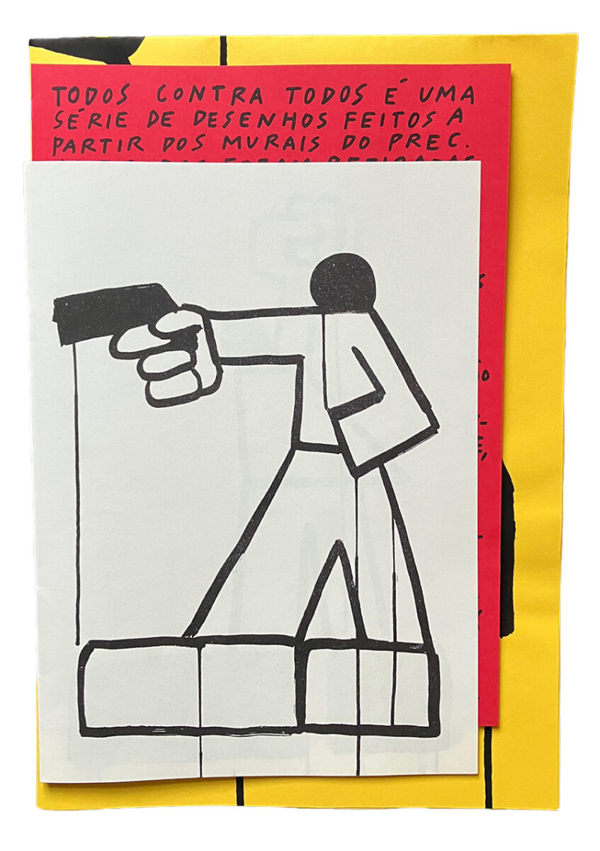 Não será fácil encontrar a mais recente publicação de Bruno Borges nas grandes superfícies livreiras, mas vale a pena procurá-la em feiras de edição ou nesse imenso espaço que também é mercado chamado internet. Todos Contra Todos é um objecto composto por três elementos: um cartaz ou poster, um texto do autor e uma plaquete em formato A4 com desenhos a preto e branco. Esses desenhos representam figuras que se inspiram nos murais criados depois do 25 de Abril, no tempo do PREC, e criam uma ponte entre esse passado que herdámos (ou ajudámos a construir, conforme a geração a que pertencemos) e um presente em que, como se lê no texto do autor, a luta passou para o plano individual.